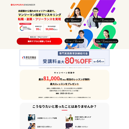 未経験からのキャリアチェンジを支援するスクール!50以上の人気スキルを学び放題