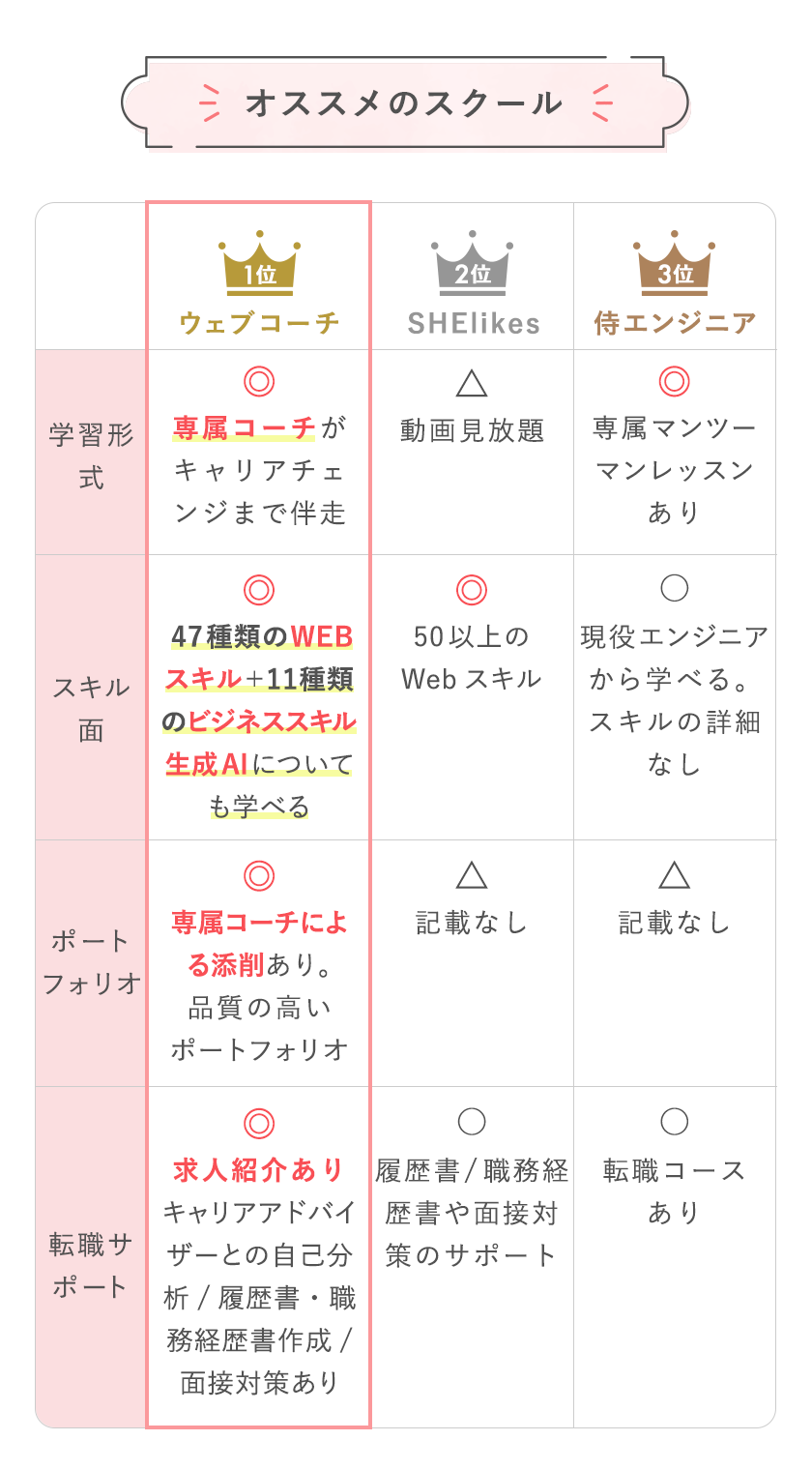 だからこそ転職を考えている方は絶対にここをチェックして、スクールを選んでほしいです。
