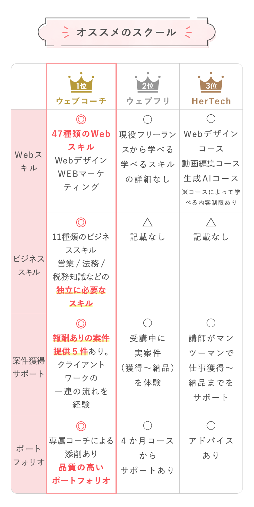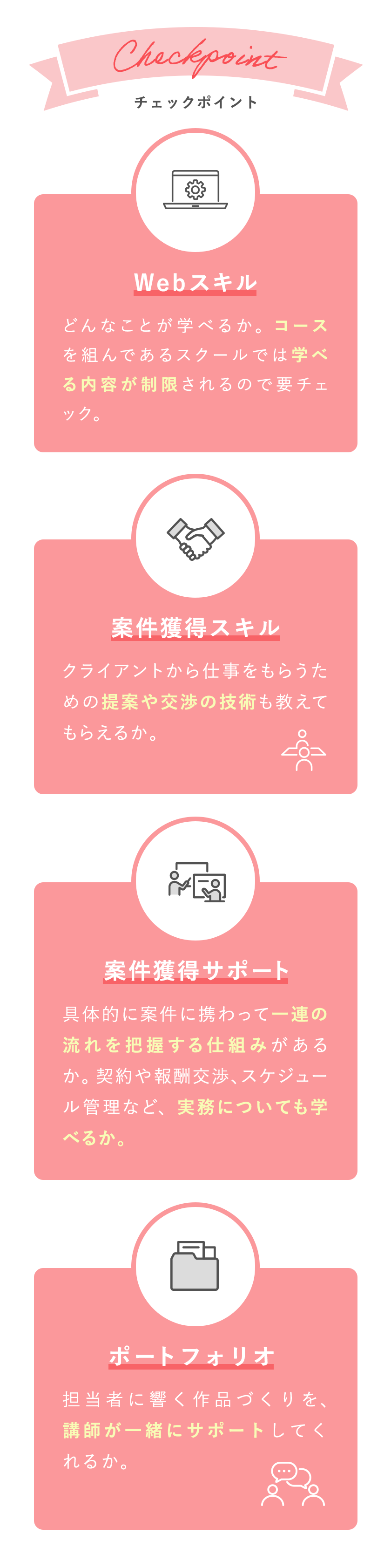 副業・フリーランスで稼ぎたいなら、絶対にここをチェックしてスクールを選んでほしいです。